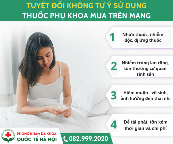Tự ý mua thuốc điều trị tại nhà không chỉ “tiền mất – tật mang” mà còn đẩy chị em vào nguy cơ đối mặt với những hậu quả không thể lường trước. → Click tại đây ! bác sĩ sẽ tư vấn bạn cách dùng thuốc hiệu quả, an toàn. Hoàn toàn miễn phí !