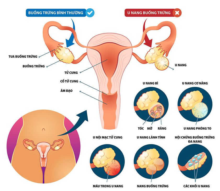 U nang buồng trứng thường được chia thành 2 loại là: U nang cơ năng và u nang thực thể.