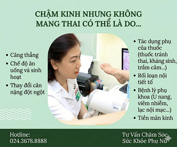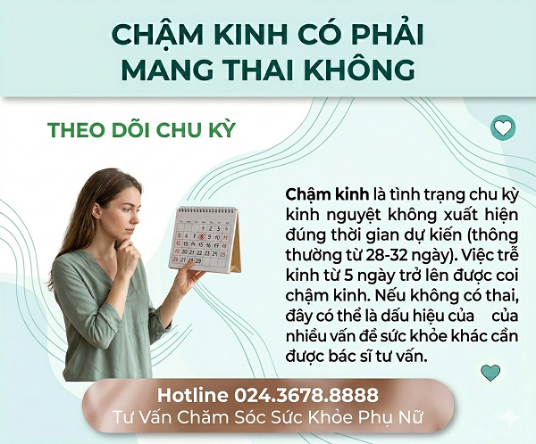 👉 Nếu bạn chậm kinh, kèm theo các dấu hiệu khác như khí hư ra nhiều, vùng kín ngứa rát. Đừng tự chuẩn đoán mà hãy ➡ đặt lịch Tại đây ! , nhận mã khám ưu tiên khám phụ khoa chỉ 299K, thăm khám cùng ThS. BS sản phụ khoa để xác định chính xác nguyên nhân chậm kinh, có biện pháp xử lý kịp thời, hiệu quả, an toàn.