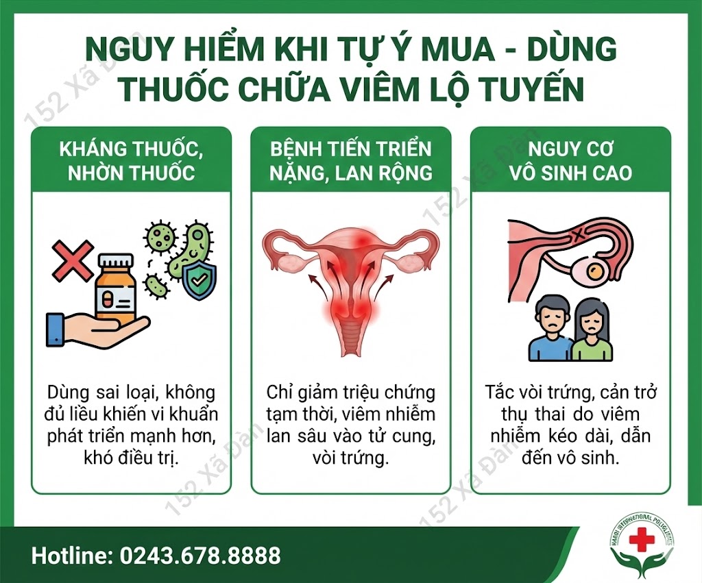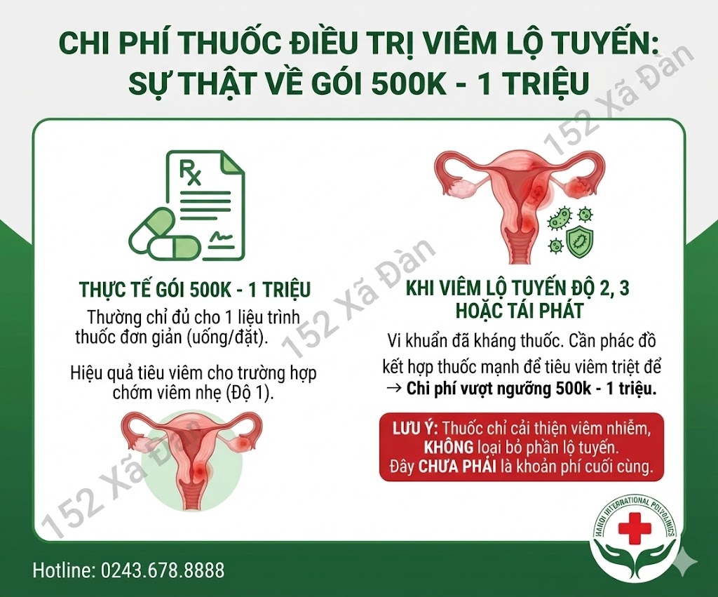 LƯU Ý: Thuốc chỉ có tác dụng cải thiện viêm nhiễm chứ không loại bỏ được phần lộ tuyến (phần tế bào tuyến phát triển sai vị trí ra bên ngoài) nên đây chưa phải là khoản chi phí cuối cùng bạn phải chi trả.