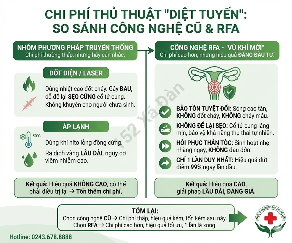 Nhưng nếu chọn công nghệ hiện đại như RFA chi phí ban đầu có vẻ cao hơn nhưng tỷ lệ tái phát thấp, bạn sẽ không cần tốn thêm các khoản điều trị tái phát sau đó.