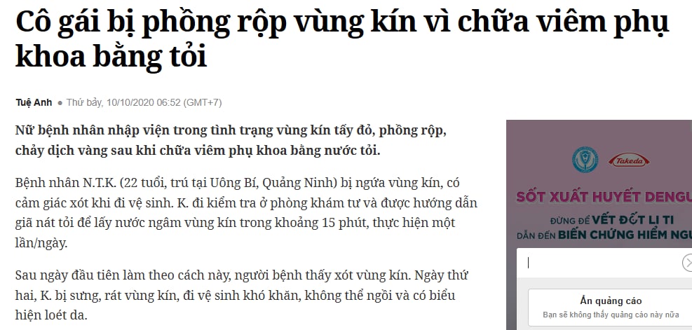 Lúc này, nhiều người bắt đầu tìm mua thuốc trên mạng hoặc áp dụng mẹo dân gian ngâm rửa vùng kín,…Nhưng đây chỉ là “điều trị mò”, hoàn toàn không mang lại hiệu quả rõ ràng.