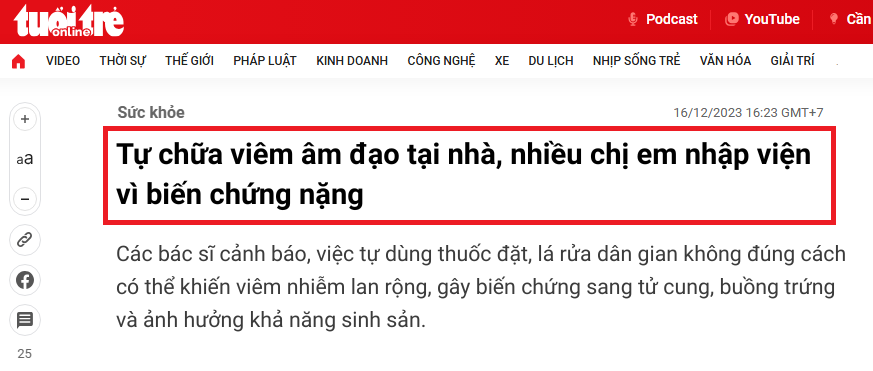 CÁI GIÁ PHẢI TRẢ KHI TỰ CHỮA VIÊM NHIỄM ÂM ĐẠO TẠI NHÀ