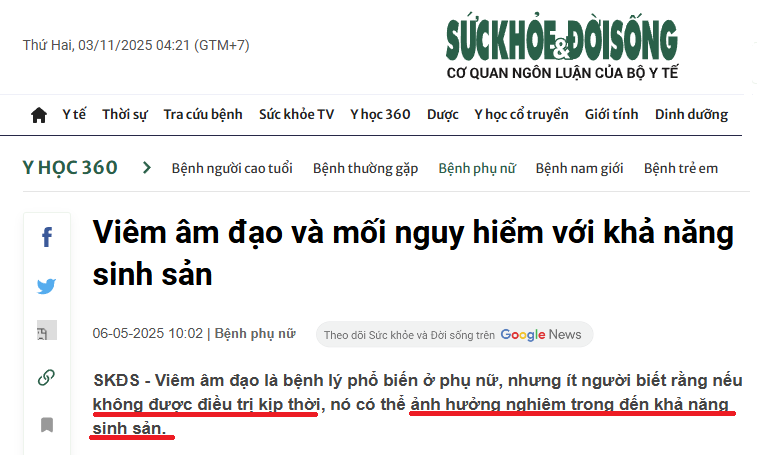 Viêm âm đạo không chỉ là “viêm nhiễm thông thường” mà là cảnh báo sức khỏe phụ khoa đang gặp nguy hiểm. Chủ động thăm khám sớm là cách duy nhất giúp phát hiện kịp thời, điều trị hiệu quả và bảo vệ khả năng sinh sản lâu dài.