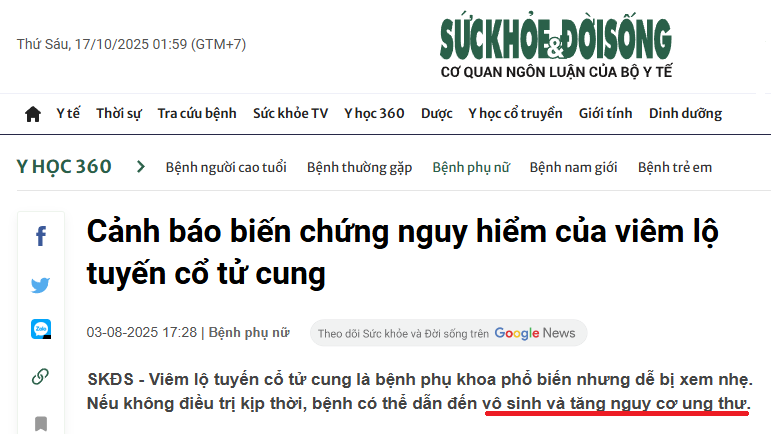 ❌ Việc tự điều trị sai có thể khiến viêm lan rộng, gây khó khăn cho việc sinh nở sau này.