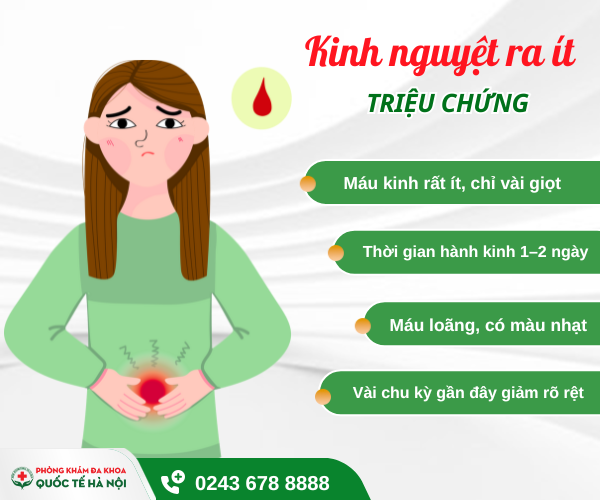 Kinh nguyệt ra ít kèm theo triệu chứng nào?