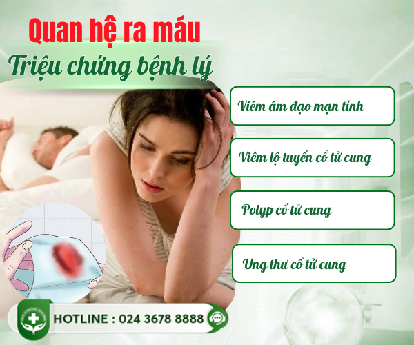 • Ra máu lặp lại nhiều lần sau mỗi lần quan hệ. Quan hệ chảy máu sau khi đã mãn kinh.