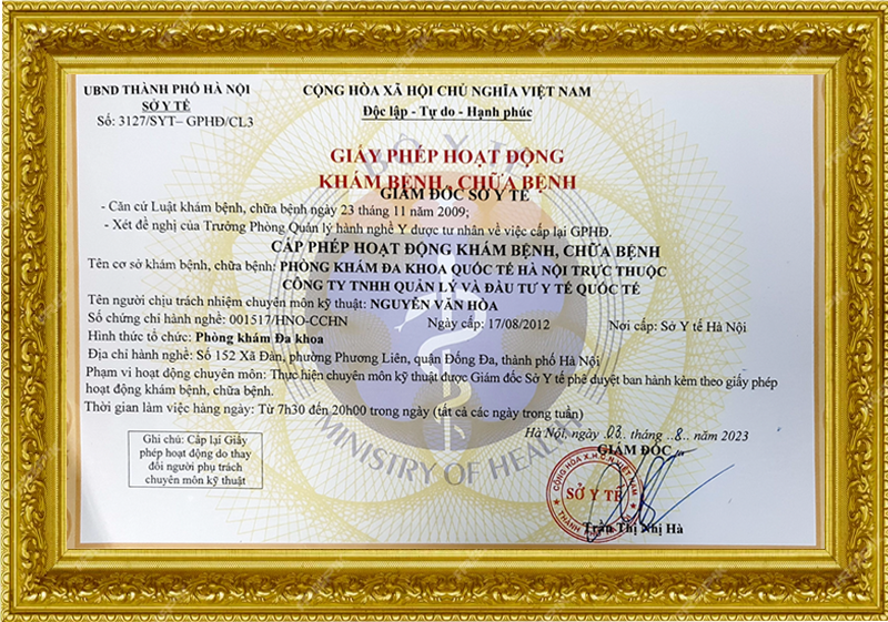 Điều đầu tiên chị em cần quan tâm khi đi khám phụ khoa là tính pháp lý và chuyên môn. Đến Đa khoa Quốc tế Hà Nội 152 Xã Đàn, chị em hoàn toàn an tâm bởi phòng khám được Sở Y tế Hà Nội cấp phép hoạt động chính quy với thế mạnh chuyên sâu trong lĩnh vực Nam – Phụ khoa, chăm sóc sức khoẻ sinh sản.