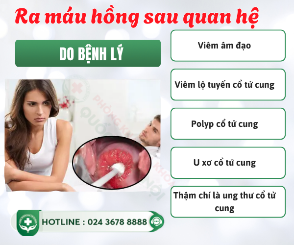 Trên thực tế, ra máu hồng sau quan hệ là hiện tượng khá phổ biến ở nữ giới trong độ tuổi sinh sản. Tuy nhiên, nguyên nhân gây ra tình trạng này rất đa dạng, có thể chỉ là phản ứng sinh lý bình thường nhưng cũng có khi là dấu hiệu cảnh báo sớm của các bệnh phụ khoa, tổn thương cổ tử cung hoặc rối loạn nội tiết.