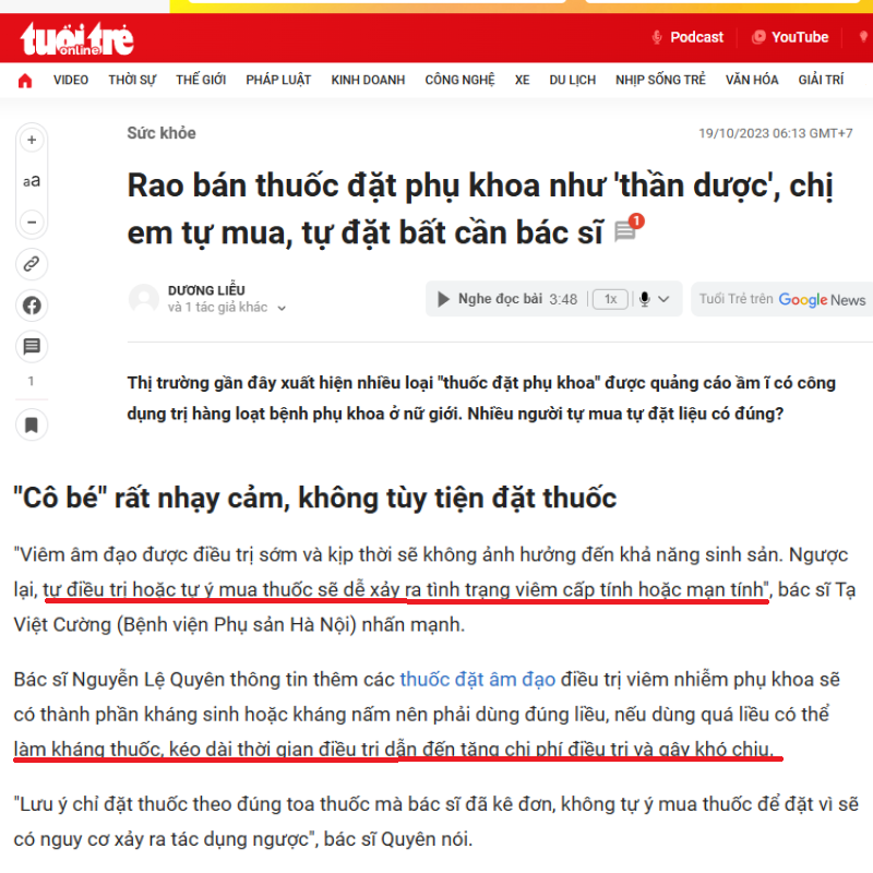 - Nhiều chị em ngại đi khám nên nghe “bạn bè chỉ loại thuốc tốt”, tự ý mua về dùng.